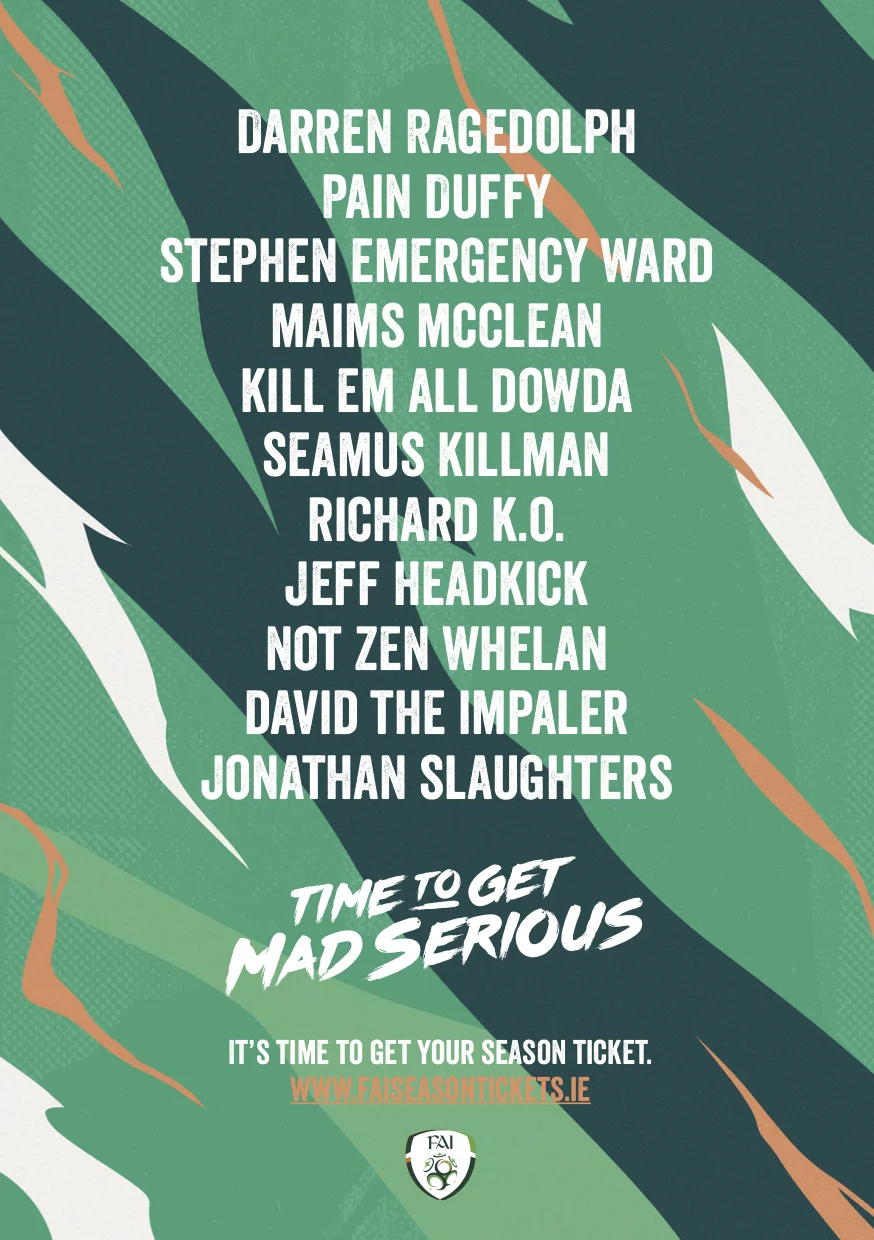 You’ve two Euro qualifiers coming up. Then three fixtures against your biggest rivals. But you can’t hit a barn door. Who’s going to bother buying a season ticket right now? It’s time for the team to get serious. Mad serious.